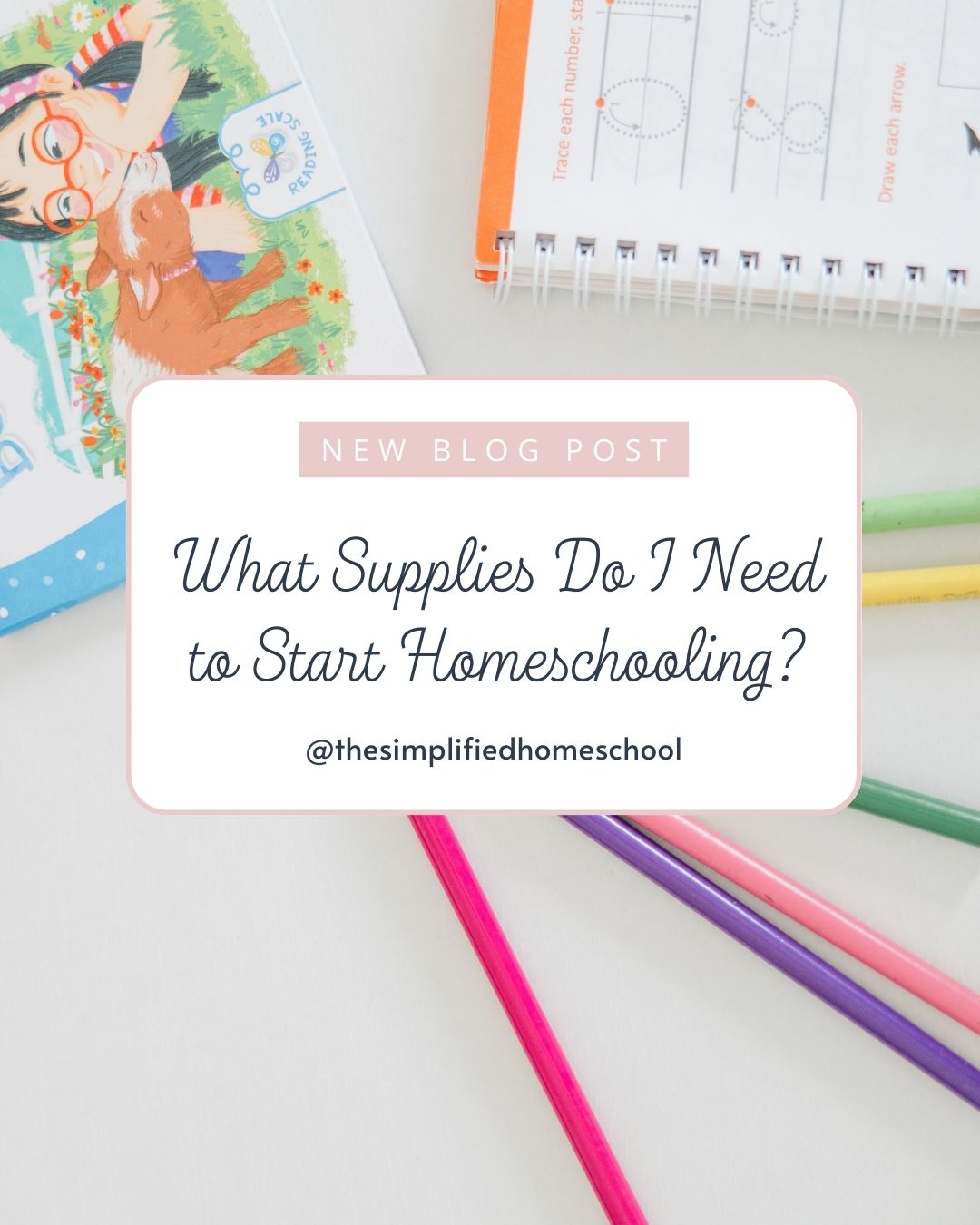 So—what supplies do you need to start homeschooling? A curriculum, some basic school supplies, and a way to stay organized. Everything else is optional.